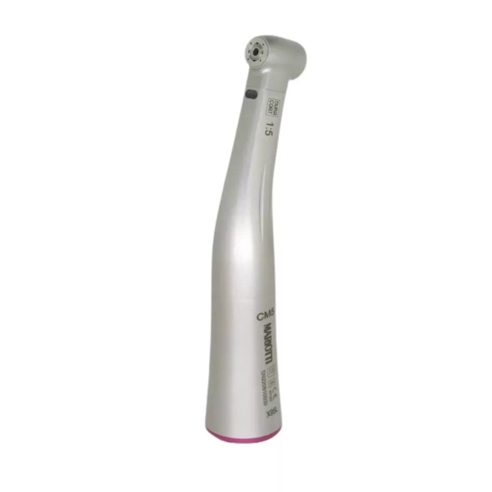 A Mariotti CM5 sebességnövelő könyökdarab áttételi aránya 1:5. Maximális fordulatszáma 200.000rpm. LED optikai szálas világítással rendelkezik. A belső spray rendszere négyszeres. FG típusú fúrókkal kompatibilis, legfeljebb 1.6mm átmérőig. A csapágyak kerámia anyagúak. A fej méretei 10mm átmérő és 14.6mm magasság. A ház rozsdamentes acélból készült, és sterilizálható autoklávban maximum 135°C hőmérsékletig. A gyártó 1 év garanciát biztosít a készülékhez.