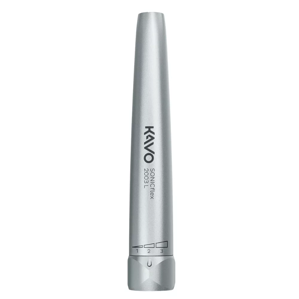 A KaVo SONICflex 2003LX szónikus fényes depurátor a KaVo harmadik generációs légmeghajtású depurátorcsaládjába tartozik, amely több mint 25 év fejlesztési tapasztalatát ötvözi egy modern, nagy teljesítményű megoldásban. A készülék körülbelül 6000Hz frekvenciájú, finoman oszcilláló tippmozgással dolgozik, amely hatékony fogkő- és plakkeltávolítást tesz lehetővé anélkül, hogy felesleges terhelést jelentene a fogfelszín vagy a környező szövetek számára. A három választható teljesítményszint 120, 160 vagy 240µm amplitúdóval biztosítja, hogy a kezelő minden indikációhoz pontosan az elvárt erősséget választhassa meg, legyen szó finom befejező munkáról, közepes intenzitású preparációról vagy nagyobb teljesítményt igénylő beavatkozásról.