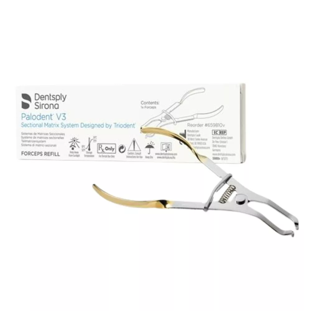 A Dentsply Sirona Palodent V3 gyűrűfeszítő a Palodent V3 szekcionális matricarendszer nélkülözhetetlen eszköze, amelyet kifejezetten a rendszer nikkel-titán rögzítőgyűrűinek precíz kezelésére fejlesztettek ki. Az applikációs fogó lehajlított véggel rendelkezik, amely lehetővé teszi a rögzítőgyűrűk pontos megfogását, kontrollált szétfeszítését és biztonságos pozicionálását a fogak mesialis vagy distalis oldalán, még korlátozott hozzáférésű klinikai helyzetekben is. A kialakítás célja a stabil fogszétválasztás támogatása anélkül, hogy a gyűrű elcsúszna vagy instabillá válna a behelyezés során.