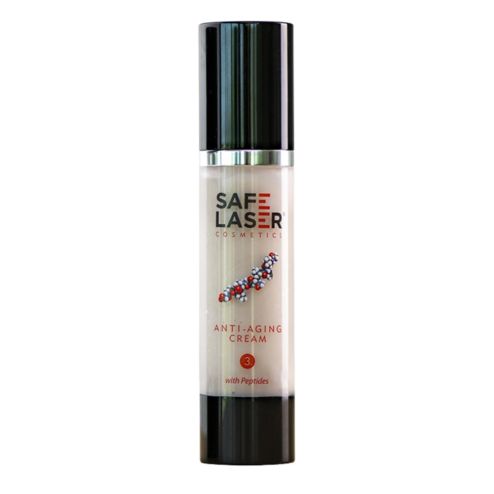 Az Anti-Aging Cream a Safe Laser Cosmetics prémium, természetes hatóanyagokkal kifejlesztett ránctalanító és hidratáló krémje, amely a bőr feszességét, rugalmasságát és vitalitását javítja. Speciális peptidek és növényi olajok kombinációja, mint a jojoba, mezei habvirág, sárgabarackmag olaj, valamint havasi gyopár és mályvarózsa kivonat táplálja, regenerálja és védi a bőrt. A krém stimulálja a kollagén és elasztin termelést, csökkenti a finom ráncokat, simává és rugalmasabbá teszi a bőrt, miközben fokozza a természetes hidratáltságot.
